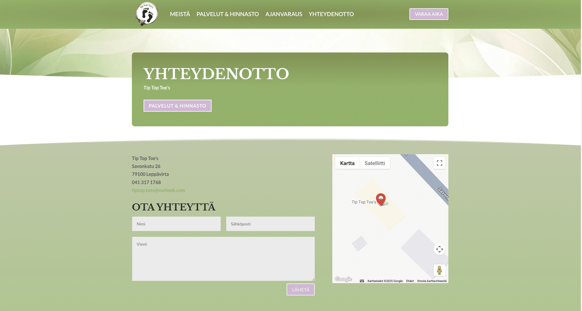 Tip Top Toe’s tarjoaa jalkojenhoitoa koti- ja laitoskäynteinä sekä omissa hoitotiloissaan. Yritys halusi selkeät ja helposti käytettävät verkkosivut, jotka tukevat asiakasviestintää ja antavat ammatillisen ensivaikutelman.